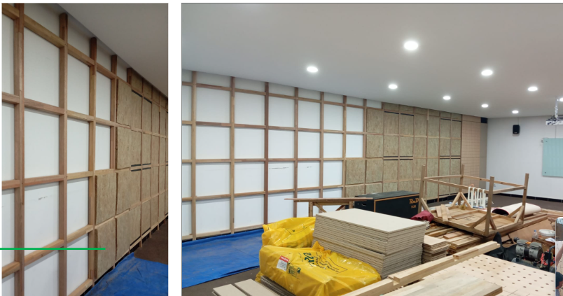 在框架结构完成后,MFC 声学空间应用将进入面板安装与收尾阶段。MFC 面板严格按照设计布局进行精准安装,最终呈现出整洁、无缝衔接的墙面效果。